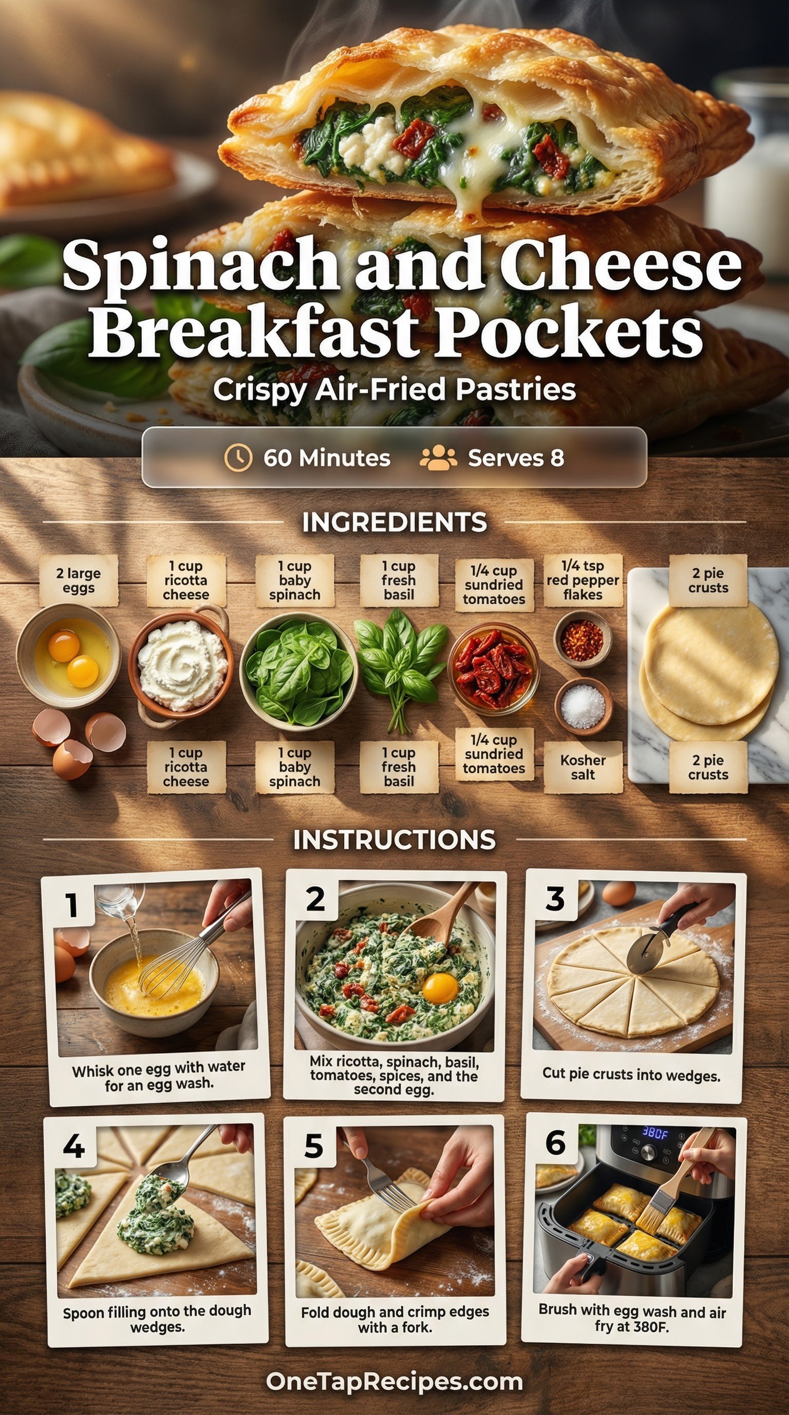 Crispy on the outside and packed with warm, savory cheese inside, these hand pies make mornings infinitely better. Store-bought pie dough keeps the assembly simple, while the air fryer ensures a perfectly flaky crust without turning on the oven. You'll love how the rich ricotta balances the tangy sundried tomatoes and fresh basil. They're a fantastic grab-and-go option that feels like a weekend treat on a busy Tuesday.