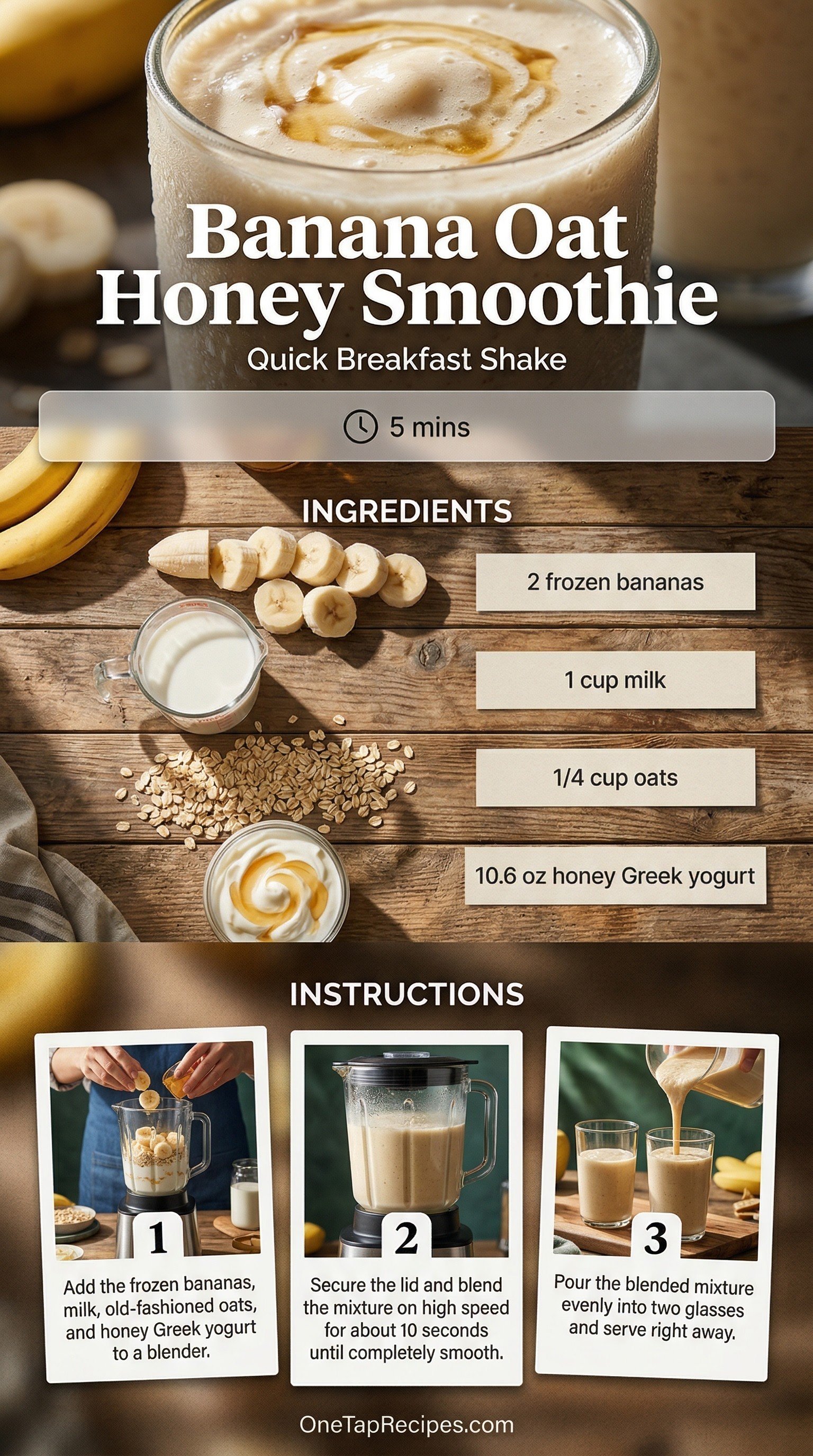 1. 1Pour the milk into a blender first, then add the frozen bananas, old-fashioned oats, and honey Greek yogurt. Adding liquids first helps the blades catch the frozen fruit more easily.