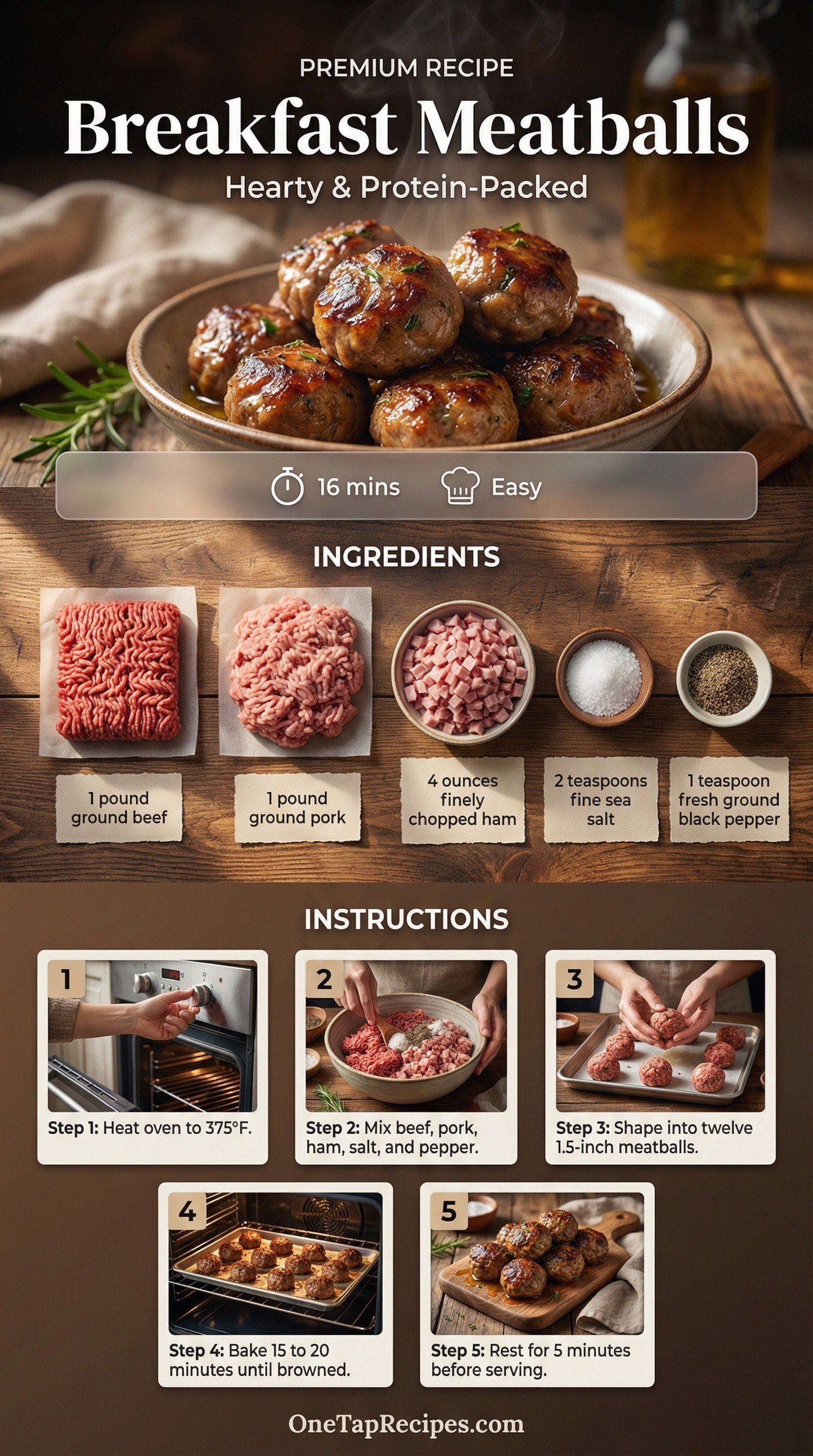 Start your morning with a hearty, protein-packed meal that comes together quickly. These savory meatballs combine ground beef, ground pork, and finely chopped ham for a rich flavor profile. Baking them in the oven keeps the process simple and hands-off. They are perfect for a weekend brunch or meal-prepping for busy weekdays. Serve them alongside eggs or top them with a rich sauce for a satisfying start to the day.