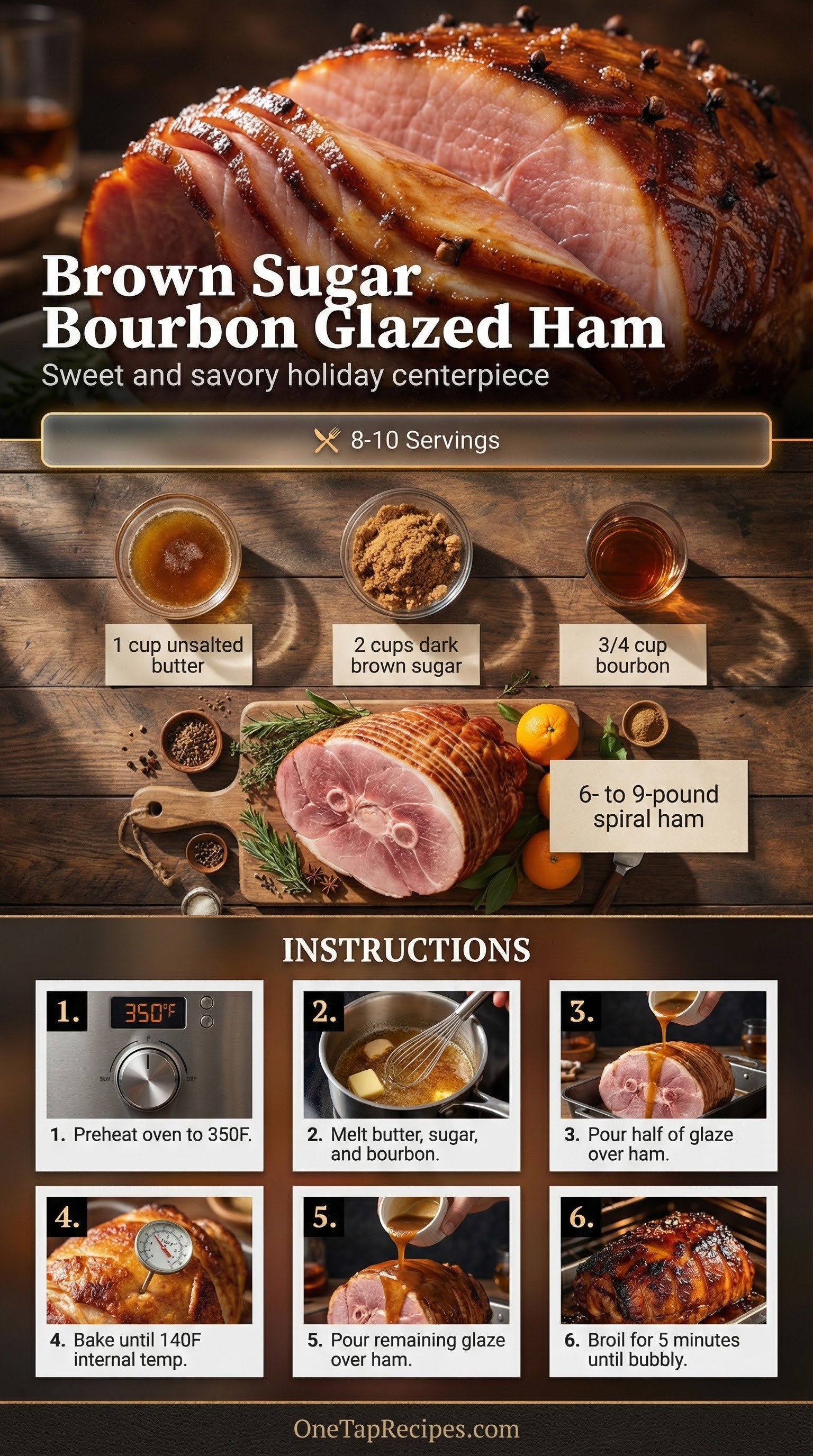 This brown sugar bourbon glazed ham is a sweet and savory centerpiece for any gathering. A homemade glaze of melted butter, dark brown sugar, and a generous pour of bourbon transforms a standard spiral ham into a sticky, caramelized masterpiece. It works beautifully for holiday dinners or weekend feasts where you want a main course with minimal prep. The final broil creates a bubbly, crisp crust that balances the rich, salty meat with deep caramel notes.