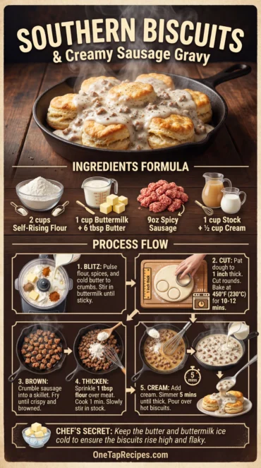This Southern classic pairs flaky, homemade buttermilk biscuits with a rich, savory gravy. By using chicken stock and half-and-half instead of heavy cream, the sauce …