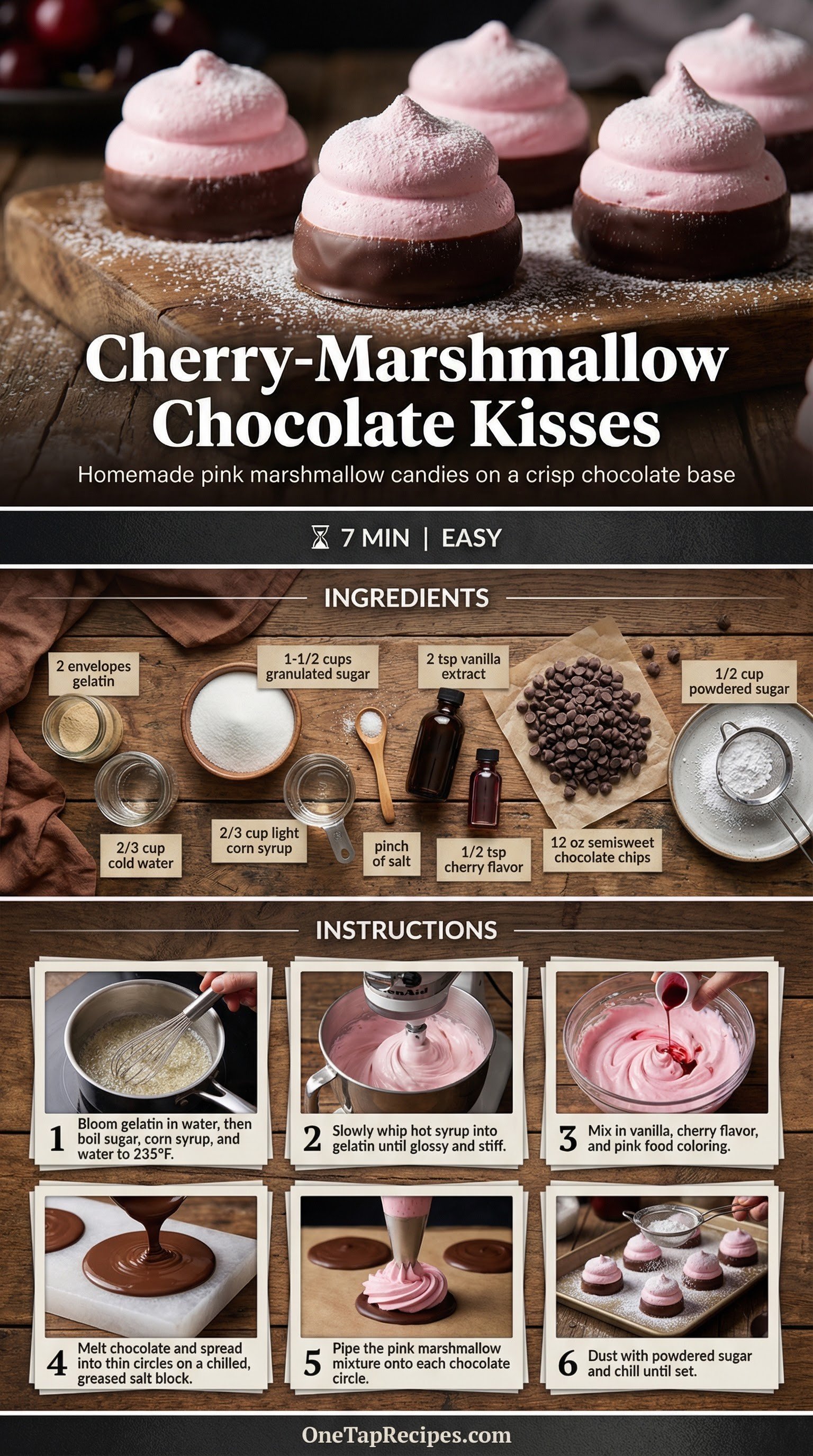 These homemade chocolate and marshmallow candies are a delightful treat to share with friends or package as a thoughtful gift. A crisp base of semisweet chocolate supports a fluffy, pink cherry-flavored marshmallow topping. Making marshmallows from scratch requires a candy thermometer and a stand mixer, but the glossy, sweet result is entirely worth the effort. You can easily swap the cherry flavoring for strawberry or raspberry to suit your taste. Serve these bite-sized confections at your next holiday gathering or enjoy them as a sweet afternoon snack.
