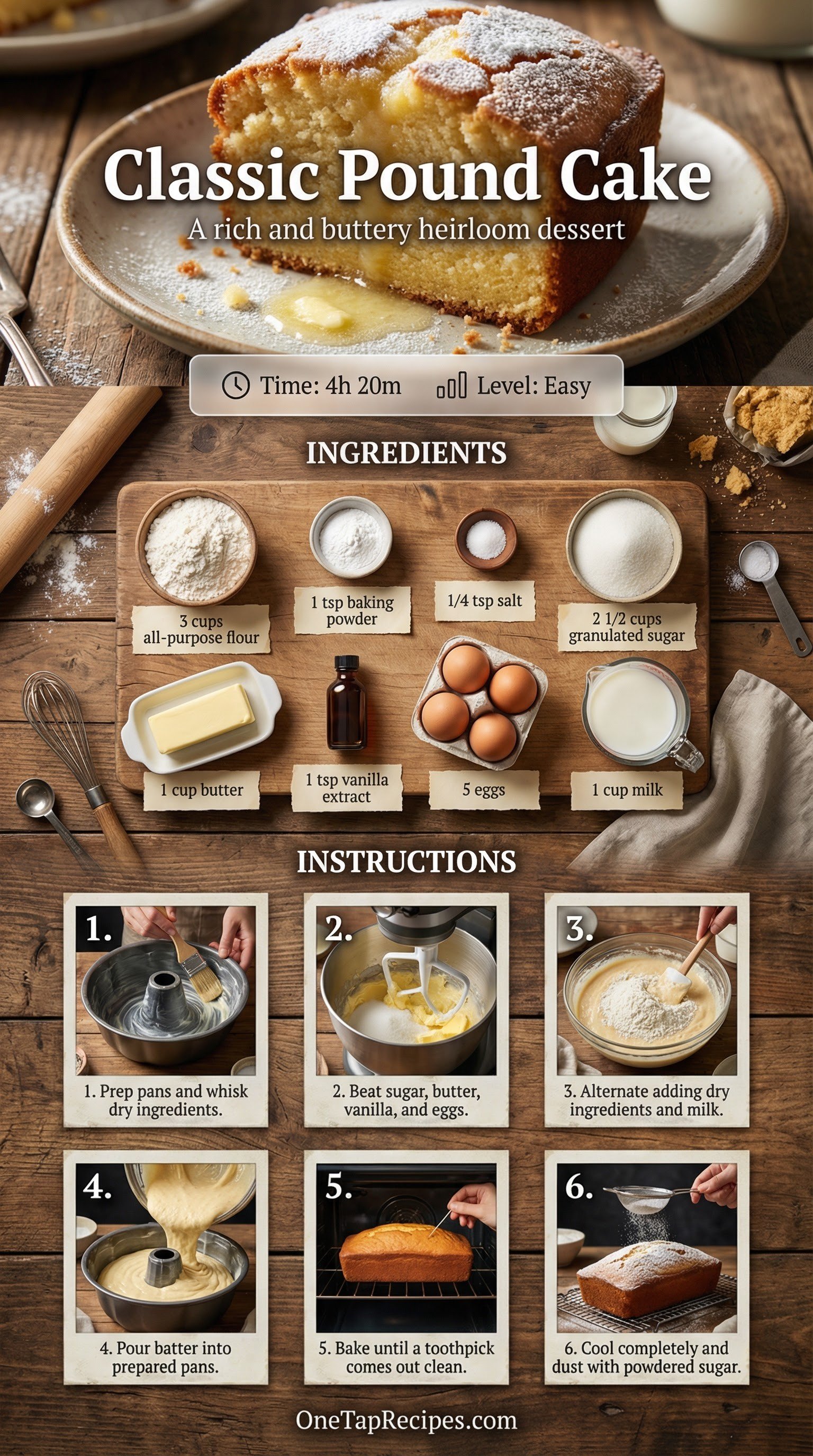 This classic pound cake delivers a rich, buttery crumb that melts in your mouth. Relying on simple pantry staples, the dense and tender texture makes it a comforting favorite for any baker. It is perfect for afternoon tea, holiday gatherings, or a simple weeknight dessert. A subtle hint of vanilla or almond extract rounds out the sweet flavor profile.