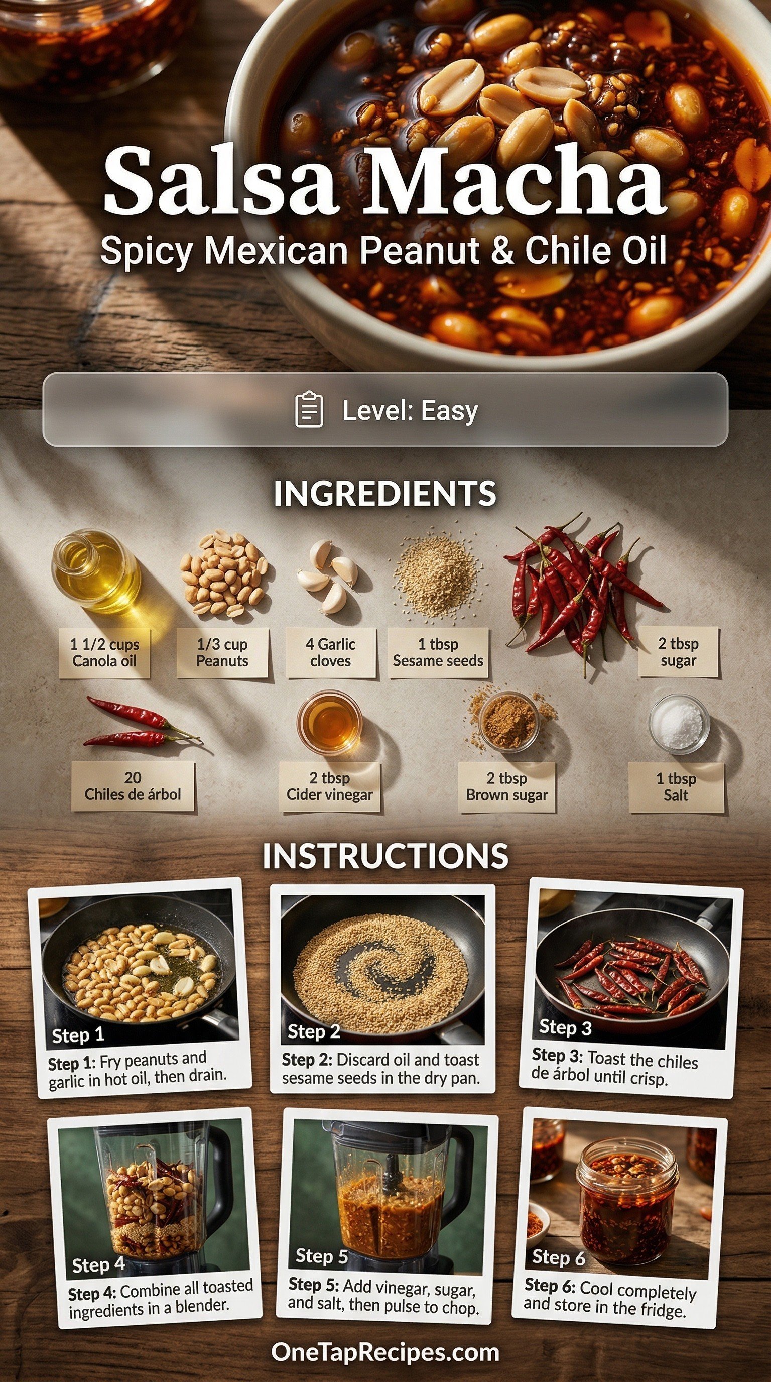 Originating from Veracruz, this rich Mexican condiment is about to become your new favorite topping. We're talking about a highly textured chili crisp packed with toasted peanuts, golden sesame seeds, and fiery chiles de árbol. It brings an incredible crunch and a deep, smoky heat to whatever you're eating. You'll want to spoon it generously over morning eggs, spread it on sandwiches, or toss it with warm noodles for a quick dinner upgrade. It's surprisingly simple to make at home and packs a massive punch of flavor.
