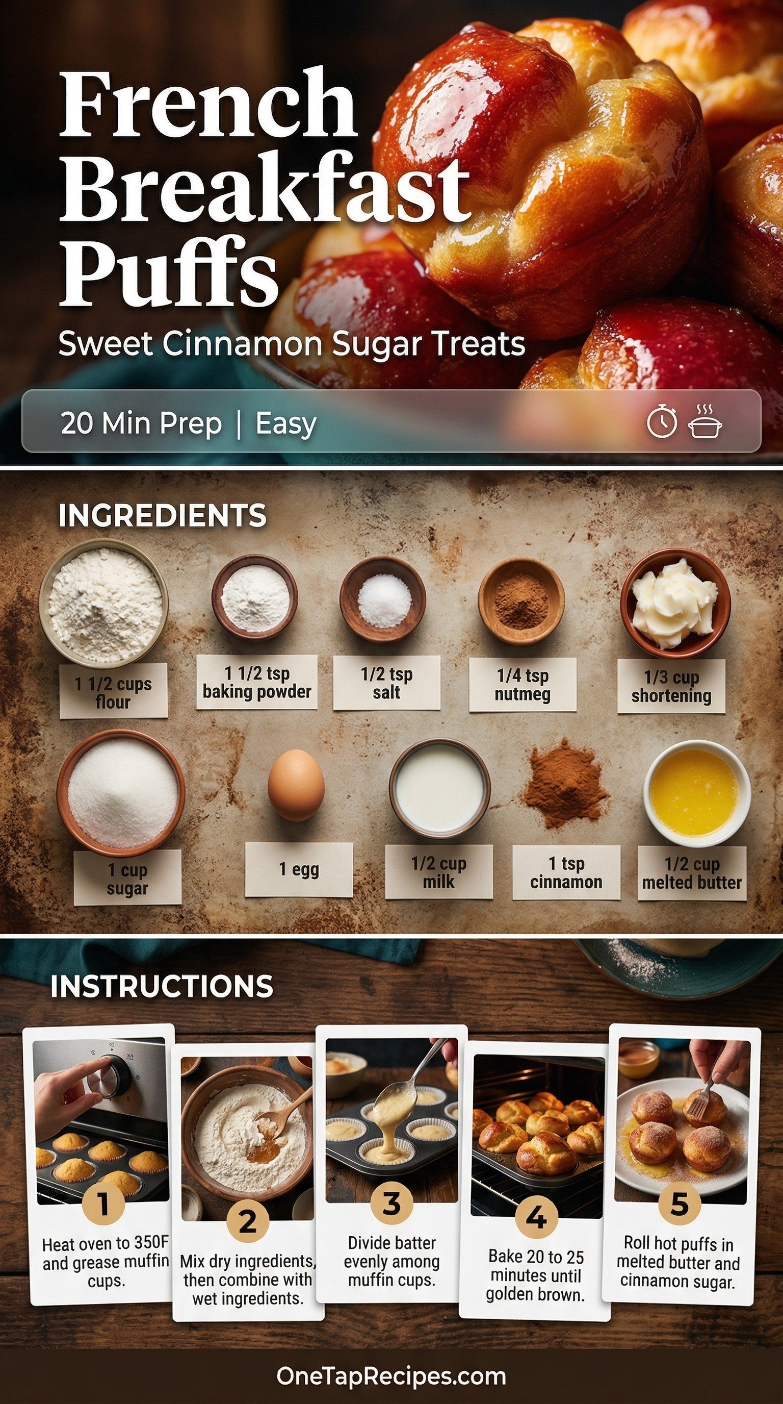 French breakfast puffs are tender, muffin-like treats rolled in melted butter and cinnamon sugar. This quick baking project delivers the comforting flavor of a classic cake doughnut without the hassle of deep frying. They are perfect for a relaxed weekend brunch or a cozy morning with a hot cup of coffee. A hint of nutmeg in the batter pairs beautifully with the sweet, crunchy exterior.