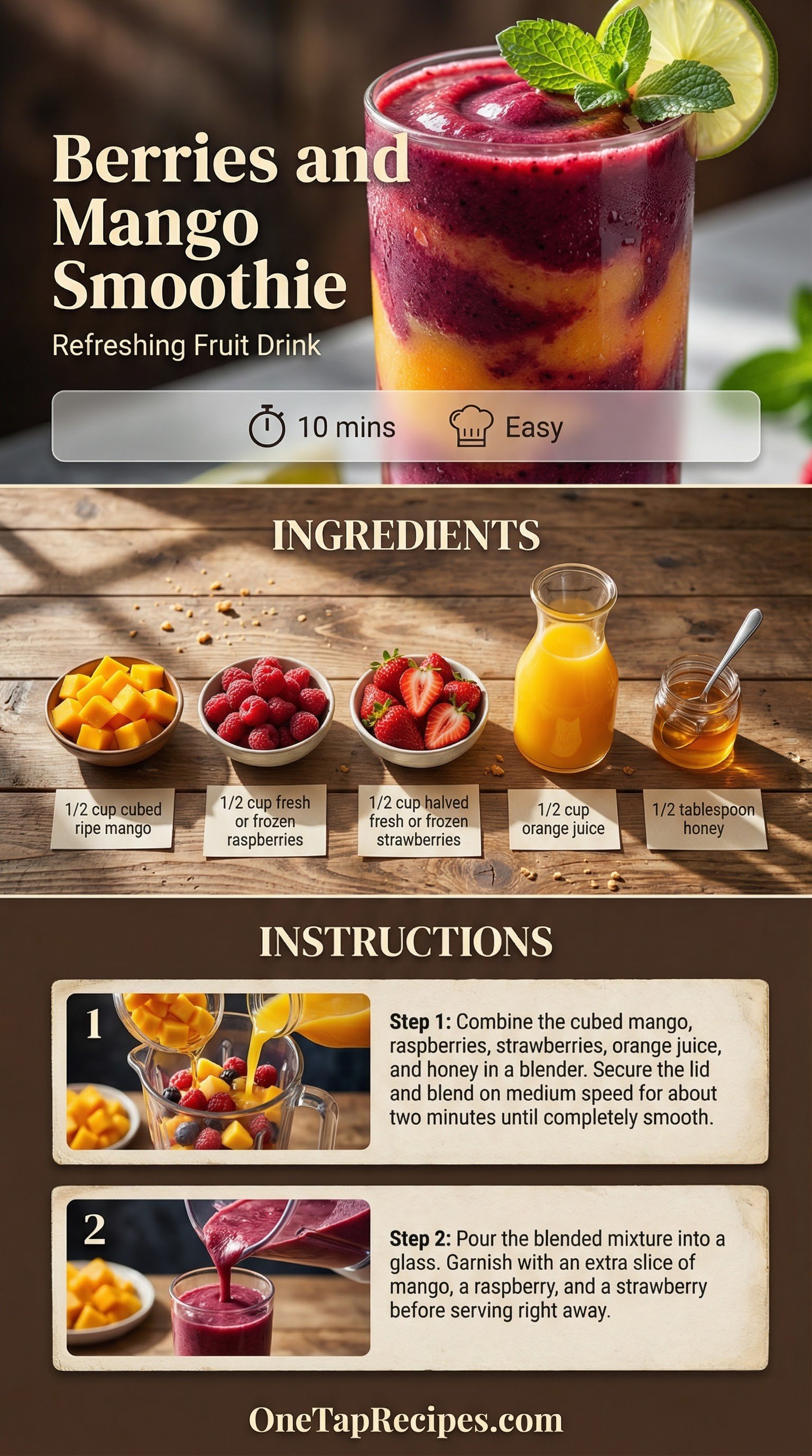 Sweet mango meets tart raspberries and strawberries in this bright, refreshing morning drink. A splash of orange juice and a touch of honey pull the flavors together into a perfectly smooth blend. It's an effortless way to start your day or cool down in the afternoon when you need a quick pick-me-up. You'll love how the lively citrus notes balance the rich berry sweetness, creating a glass that's both satisfying and energizing.