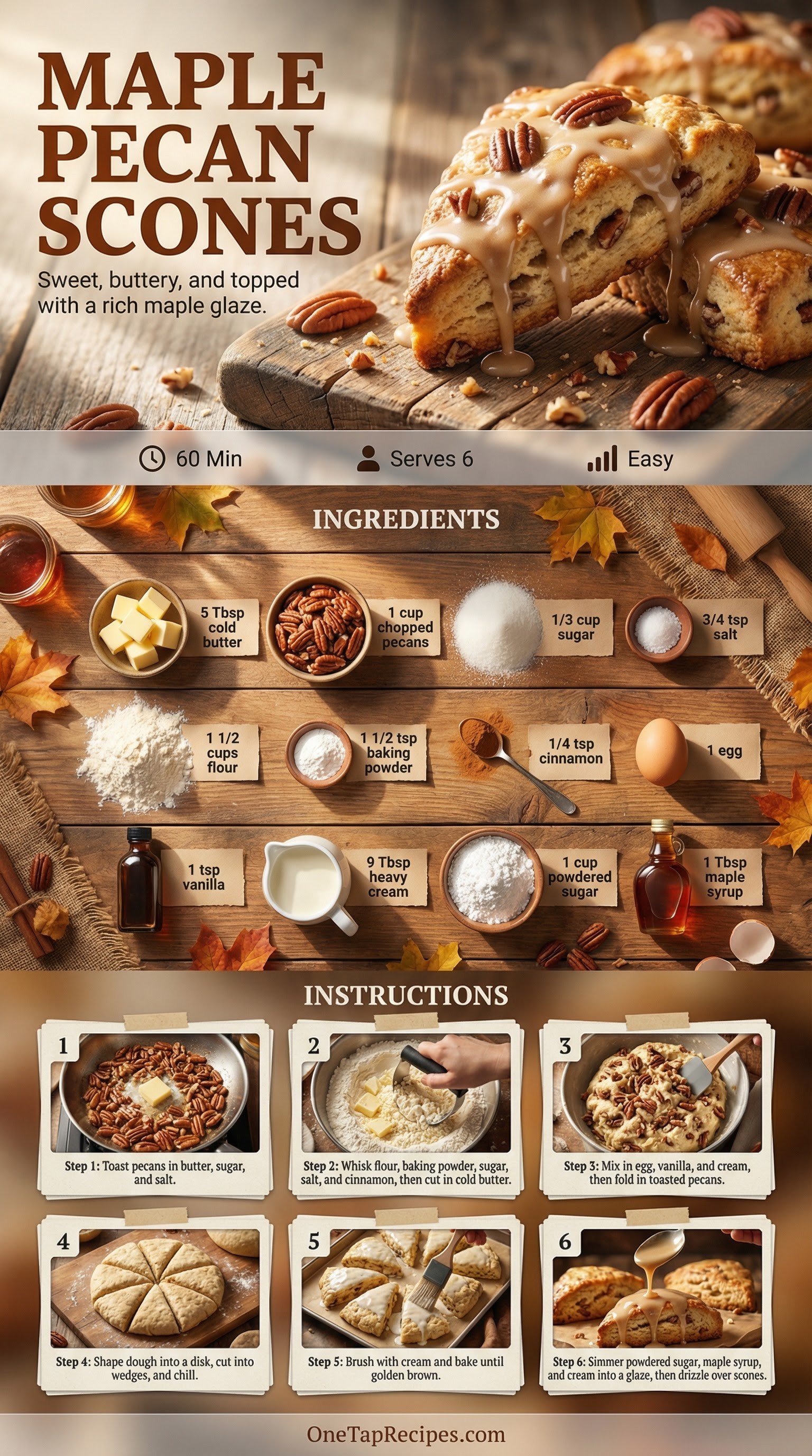 These tender maple pecan scones are a comforting addition to any breakfast table. Toasted pecans add a deep, nutty crunch to the buttery dough, while a hint of cinnamon brings warm spice. A quick homemade maple glaze drizzled over the warm pastries creates a sweet, glossy finish. Serve them fresh from the oven with a hot cup of coffee for a relaxed weekend morning.