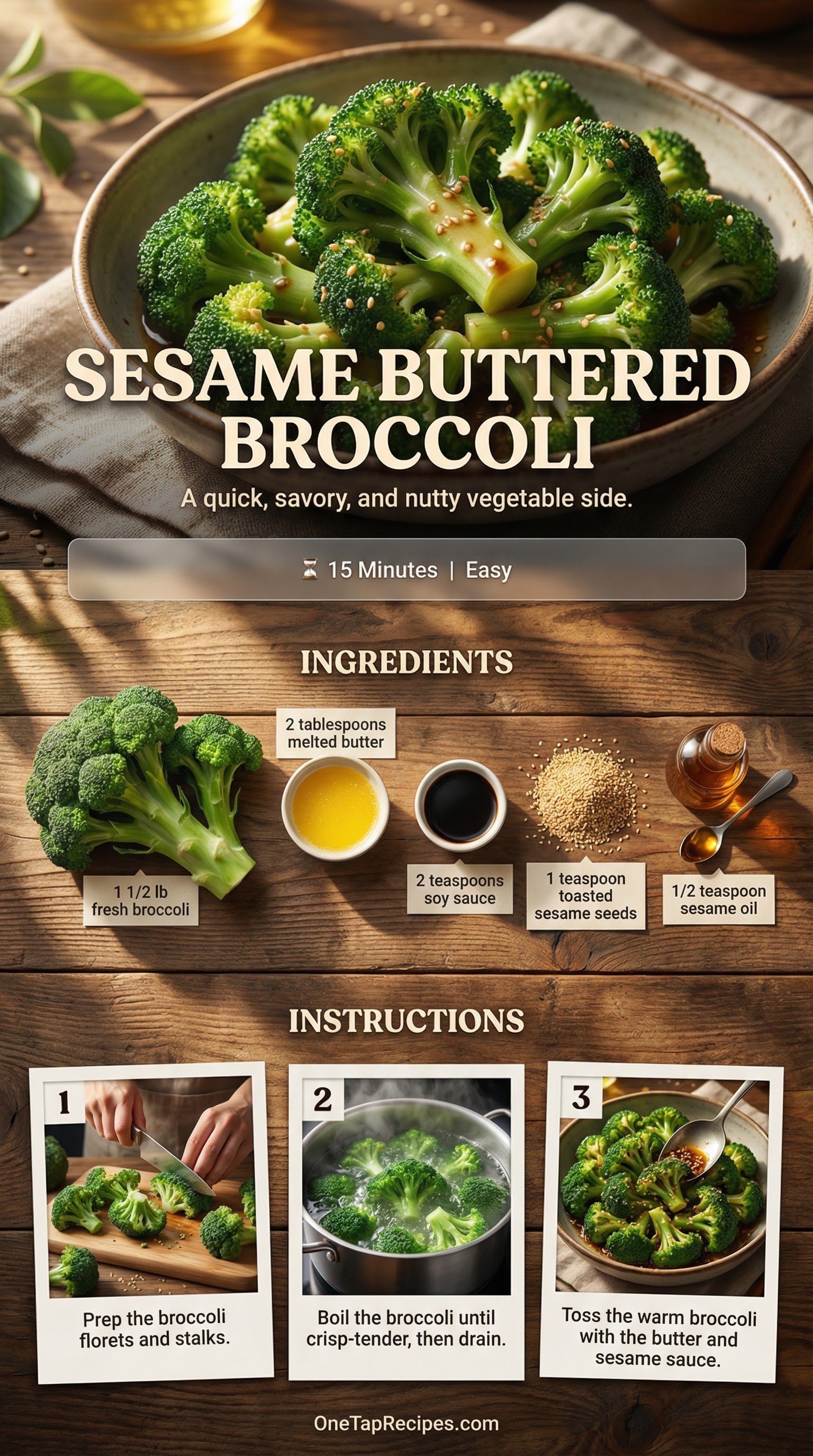 This simple vegetable side dish features tender-crisp broccoli tossed in a rich, nutty sauce. It comes together quickly by combining melted butter with soy sauce, toasted sesame seeds, and a hint of sesame oil. The savory glaze coats the fresh florets and stalks perfectly. Serve this fast and flavorful recipe alongside your favorite weeknight mains for an easy, satisfying addition to the dinner table.