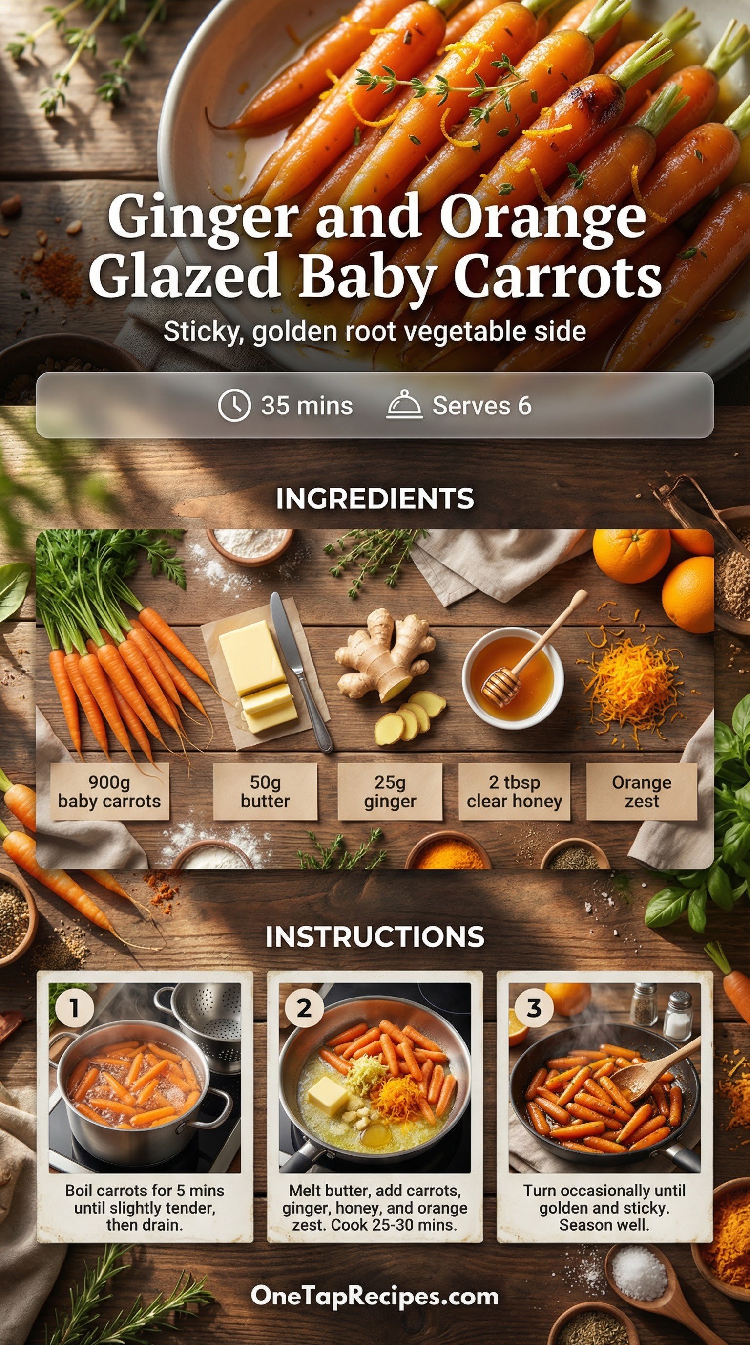 Glossy, golden-brown, and perfectly tender, these baby carrots are coated in a sticky, sweet glaze that you'll absolutely love. Freshly grated ginger and honey create a warming flavor profile that caramelizes beautifully right in the pan. They're soft on the inside with a rich exterior that pairs wonderfully with a roasted chicken or holiday main course. You won't believe how much flavor develops from just a few basic ingredients.