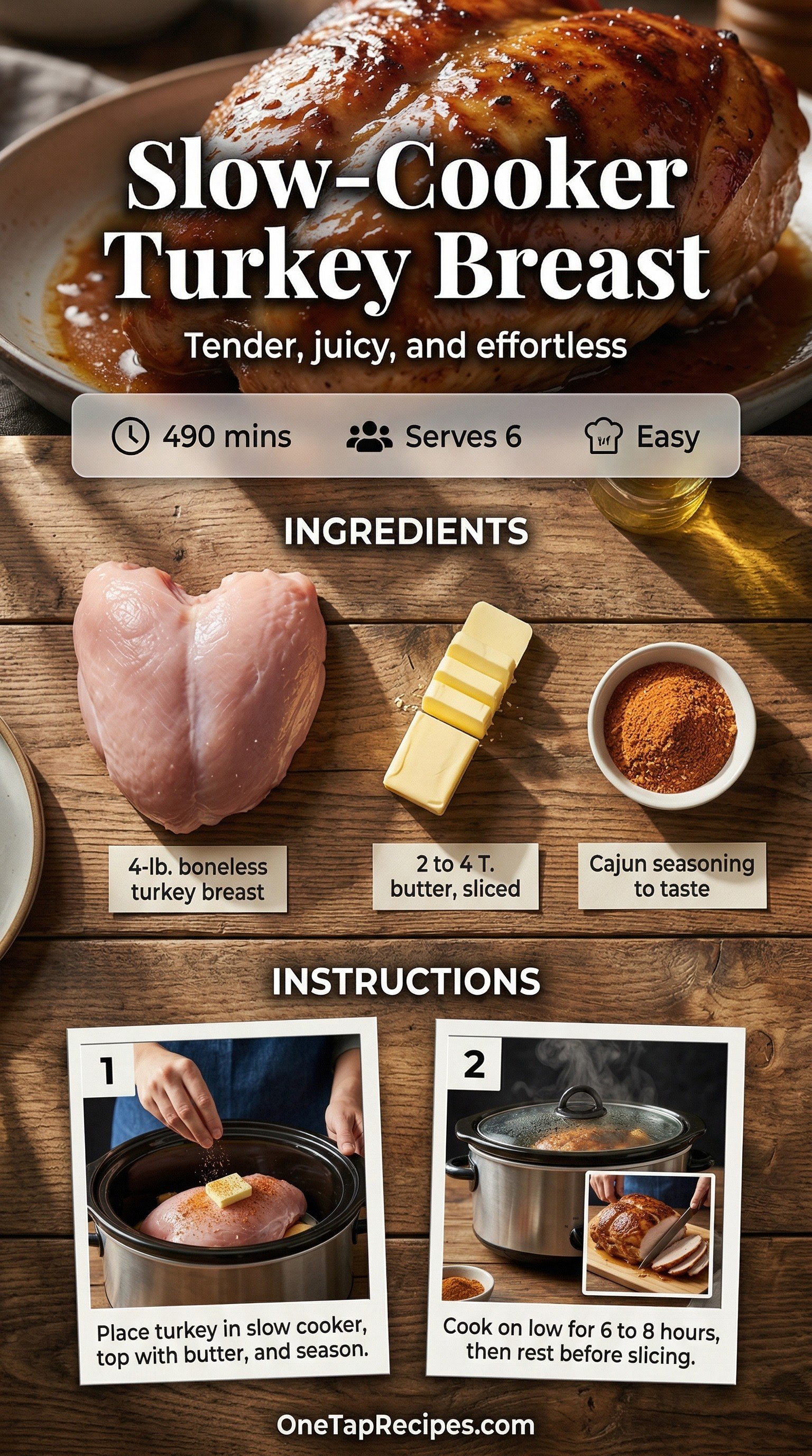 A boneless turkey breast cooks gently in the slow cooker until perfectly tender and juicy. Butter and Cajun seasoning melt into the meat over several hours, creating a rich flavor profile with minimal effort. It is an ideal main course for busy weeknights or a scaled-down holiday dinner. The savory drippings left in the pot can easily be thickened into a quick gravy right before serving.