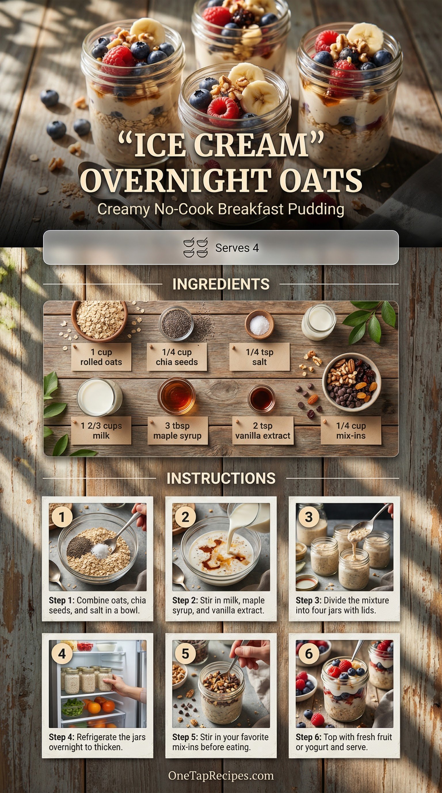 Thick, creamy, and remarkably reminiscent of melted vanilla ice cream, this breakfast pudding turns morning routines upside down. Rolled oats and chia seeds soak overnight in milk, absorbing a generous splash of vanilla and a touch of maple syrup while you sleep. It's a fantastic make-ahead meal that acts as a blank canvas for your favorite toppings. You'll love how easily it adapts to whatever fresh berries, toasted nuts, or nut butters you have on hand.